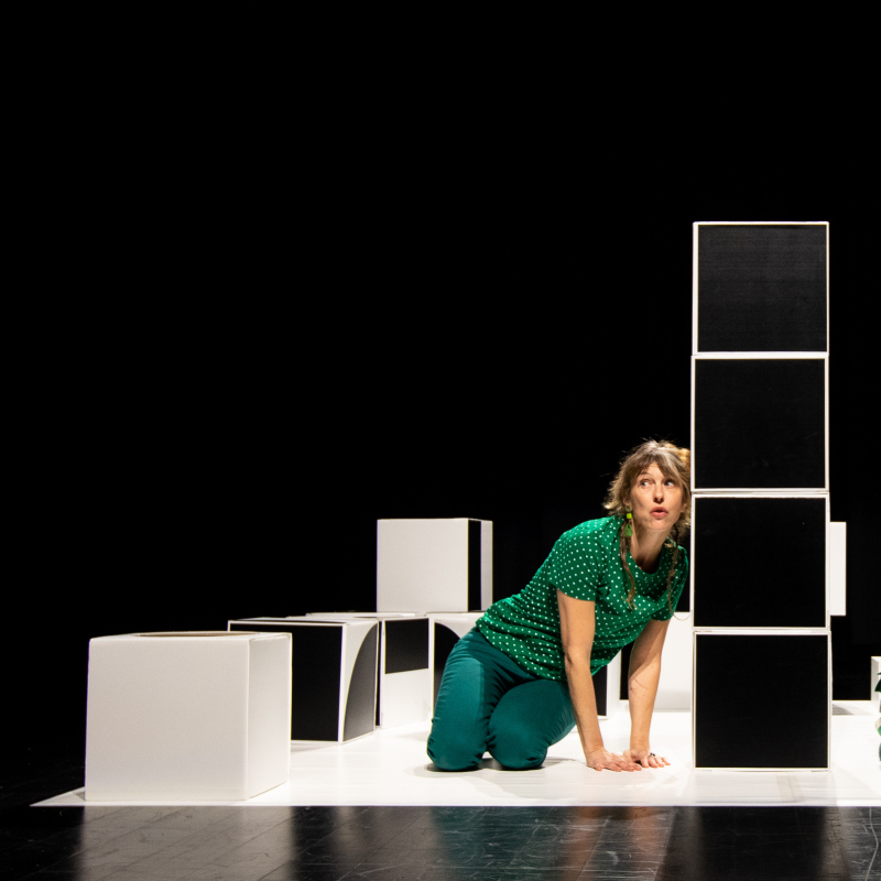 26 cubes en noir et blanc. 2 éléphants, 4 poissons, un serpent, un crocodile et un papillon. Une fille et un garçon. Ce sont les ingrédients de « Tout est chamboulé » ! 26 cubes pour s’amuser, pour construire et déconstruire. Des cubes à déplacer, à porter. Des cubes pour se cacher, pour créer des images, des espaces et des chemins. Une fille et un garçon. Deux joueurs qui s’amusent, inventent et explorent ! Se découvrent. Une traversée en duo. Un jeu de construction où les rôles parfois s’inversent. Un abécédaire animalier pour partager le plaisir du jeu. En collaboration avec la Fabrique de Théâtre.
